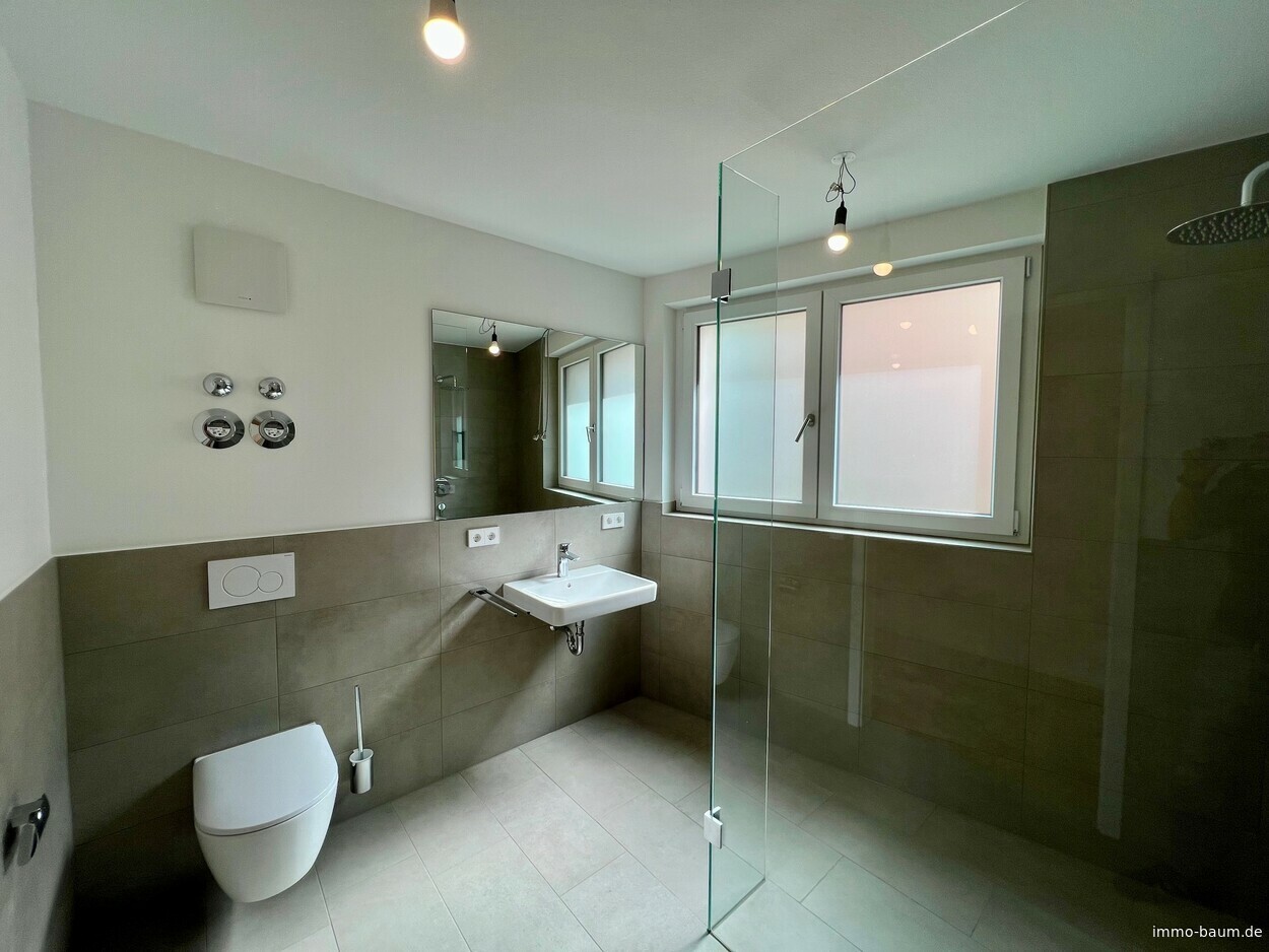 Diese hochwertige 3-Zimmer-Neubauwohnung im Erdgeschoss vereint modernen Wohnkomfort mit zeitloser Eleganz und ökologischer Nachhaltigkeit. Auf rund 106 m² Wohnfläche finden Sie hier nicht nur ein großzügiges Raumkonzept, sondern auch exklusivste Ausstattungsmerkmale, die keine Wünsche offenlassen. Die Wohnung überzeugt durch ihre durchdachte Raumaufteilung und bietet zusätzlich einen privaten Garten, der Ihnen ein hohes Maß an Lebensqualität und Rückzugsort inmitten der Natur ermöglicht. Bereits beim Betreten der Wohnung werden Sie von einer großzügigen Diele empfangen, die einen einladenden Übergang in den lichtdurchfluteten Wohn- und Essbereich und den Zimmern schafft. Die offene Raumgestaltung in Verbindung mit raumhohen Fenstern sorgt für eine freundliche und luftige Atmosphäre, die den gesamten Raum mit natürlichem Licht erfüllt. Die direkte Anbindung an die Terrasse und den angrenzenden Garten erweitert den Wohnbereich und bringt das Leben ins Freie. Hier können Sie entspannen, den Tag ausklingen lassen oder in aller Ruhe Ihre Zeit genießen - der private Garten wird zum Herzstück der Wohnung. Das moderne Badezimmer überzeugt nicht nur durch hochwertige Sanitärobjekte, sondern auch durch seine elegante Gestaltung. Die bodentiefe Dusche, das Fenster, sowie der stilvolle Handtuchheizkörper ergänzen sich perfekt und sorgen für ein rundum angenehmes Nutzungserlebnis. Elegante Bodenfliesen harmonieren mit den modernen Elementen und schaffen eine luxuriöse Atmosphäre. Ein zusätzliches Gäste-WC rundet das Angebot ab und bietet Gästen eine eigene Privatsphäre. Alle Wohn- und Schlafräume sind mit Parkett ausgestattet, das dem gesamten Raum eine warme und behagliche Atmosphäre verleiht. Die offene Küche fügt sich perfekt in das Gesamtkonzept der Wohnung ein. Ein praktischer Abstellraum sorgt für zusätzlichen Stauraum und Ordnung. Zur Wohnung gehört ein Tiefgaragenplatz, der durch eine Wall-Box für die Aufladung von Elektrofahrzeugen ausgestattet ist - eine praktische Lösung für umweltbewusste Mobilität. Der Tiefgaragenplatz kostet zusätzlich für 35.000 EUR. Rufen Sie an und vereinbaren Sie einen Besichtigungstermin.Fußbodenheizung: Eine durchdachte Fußbodenheizung sorgt für angenehme Wärme in allen Räumen und trägt zu einer angenehmen Raumtemperatur bei.