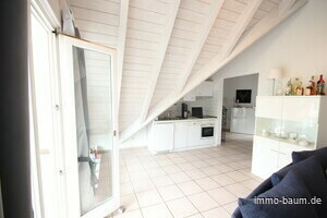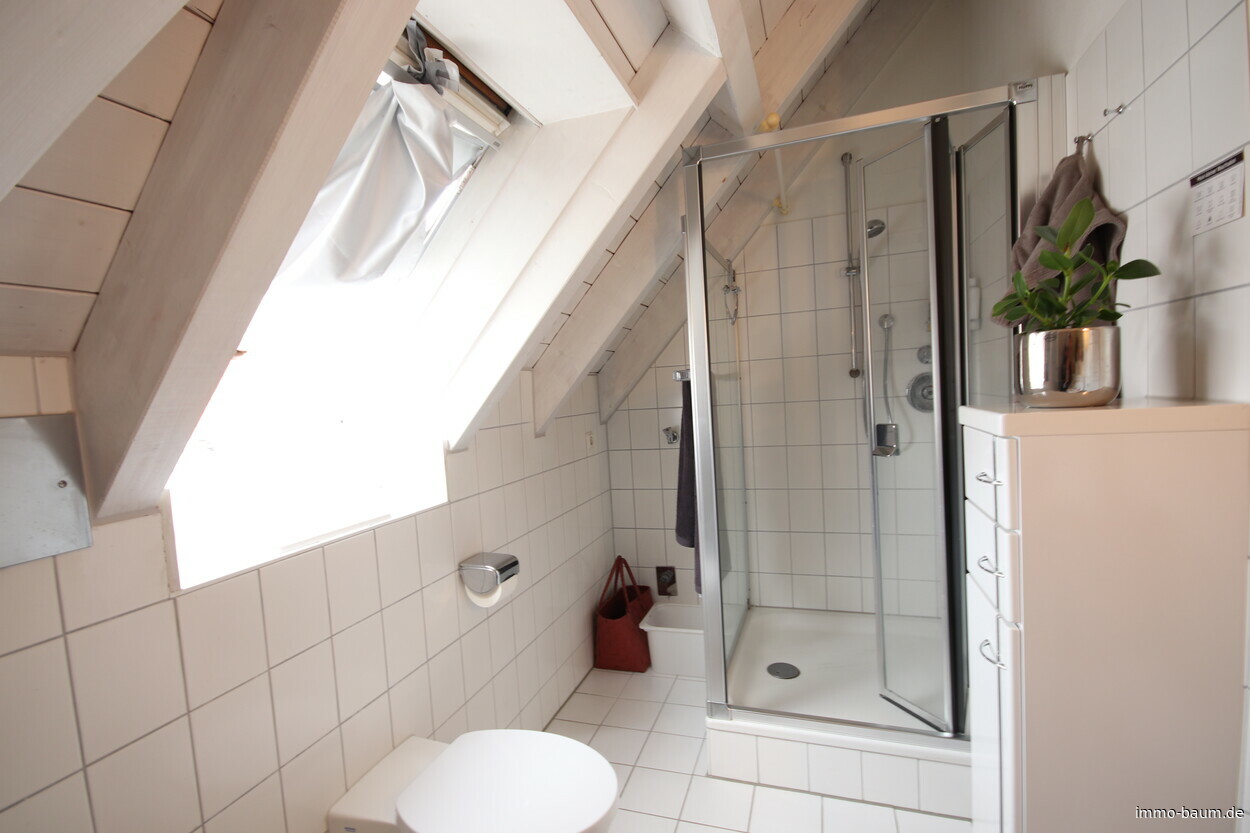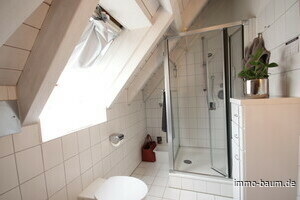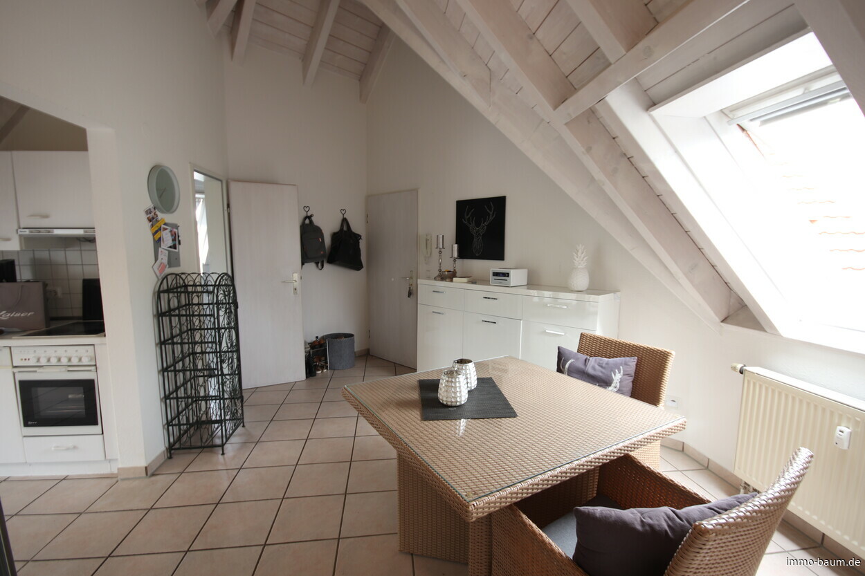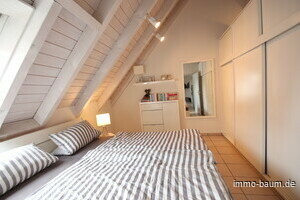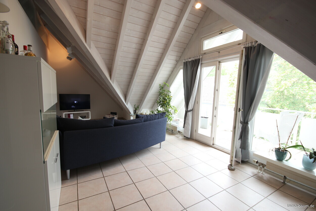 Das im Jahr 1993/94 erbaute Mehrfamilienhaus ist gepflegt, ruhig gelegen und bietet modernen Wohnkomfort. Ein Aufzug führt bequem bis in das Dachgeschoss - barrierearm und alltagstauglich für jedes Alter. Die Wohnung selbst liegt in der obersten Etage und bietet durch die Lage einen besonders schönen Ausblick ins Grüne sowie eine angenehme Ruhe trotz Innenstadtlage. Die rund 48 m² große Dachgeschosswohnung überzeugt mit einem durchdachten Grundriss und einer hellen, freundlichen Ausstrahlung. Besonders ins Auge fällt die großzügige Raumwirkung durch die hohen Decken bis in den First sowie das sichtbare, weiß gestrichene Gebälk, das dem Wohnraum einen gemütlichen und gleichzeitig luftigen Charakter verleiht. Die Dachgeschosswohnung überzeugt mit einer durchdachten und funktionalen Ausstattung, die sowohl Komfort als auch Wohnqualität bietet. Wohn- und Schlafzimmer sind mit hellen, pflegeleichten Fliesenböden ausgestattet, die dem Raum eine freundliche, zeitlose Atmosphäre verleihen. Der offene Wohn- und Essbereich bietet direkten Zugang zum großzügigen überdachten Balkon, der nach Südwesten ausgerichtet ist. Mit seinem Blick ins Grüne wird er in den warmen Monaten zum erweiterten Wohnbereich und lädt zum Verweilen ein. Die kleine, funktionale Einbauküche fügt sich harmonisch in den Wohnraum ein. Das Badezimmer ist hell gefliest und mit einer praktischen Dusche sowie einem Platz für die Waschmaschine ausgestattet. Im Schlafzimmer sorgt ein maßgefertigter Einbauschrank für optimalen Stauraum, ohne dabei wertvolle Stellfläche zu verlieren - eine platzsparende Lösung mit praktischem Mehrwert. Zur Wohnung gehört ein Kellerabteil im Untergeschoss, das Ihnen zusätzlichen Stauraum bietet. Der Tiefgaragenstellplatz kostet zusätzlich 20.000 EUR - ein wertvoller Vorteil in zentraler Lage.
